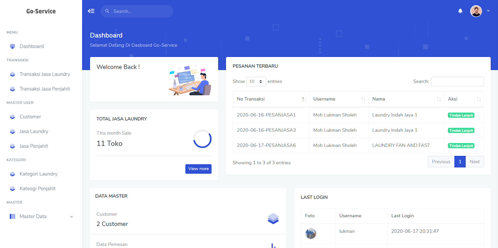 Berikut adalah aplikasi go service jasa laundry dan jasa jahit. dimana aplikasi ini terdiri dari 4 user yaitu :